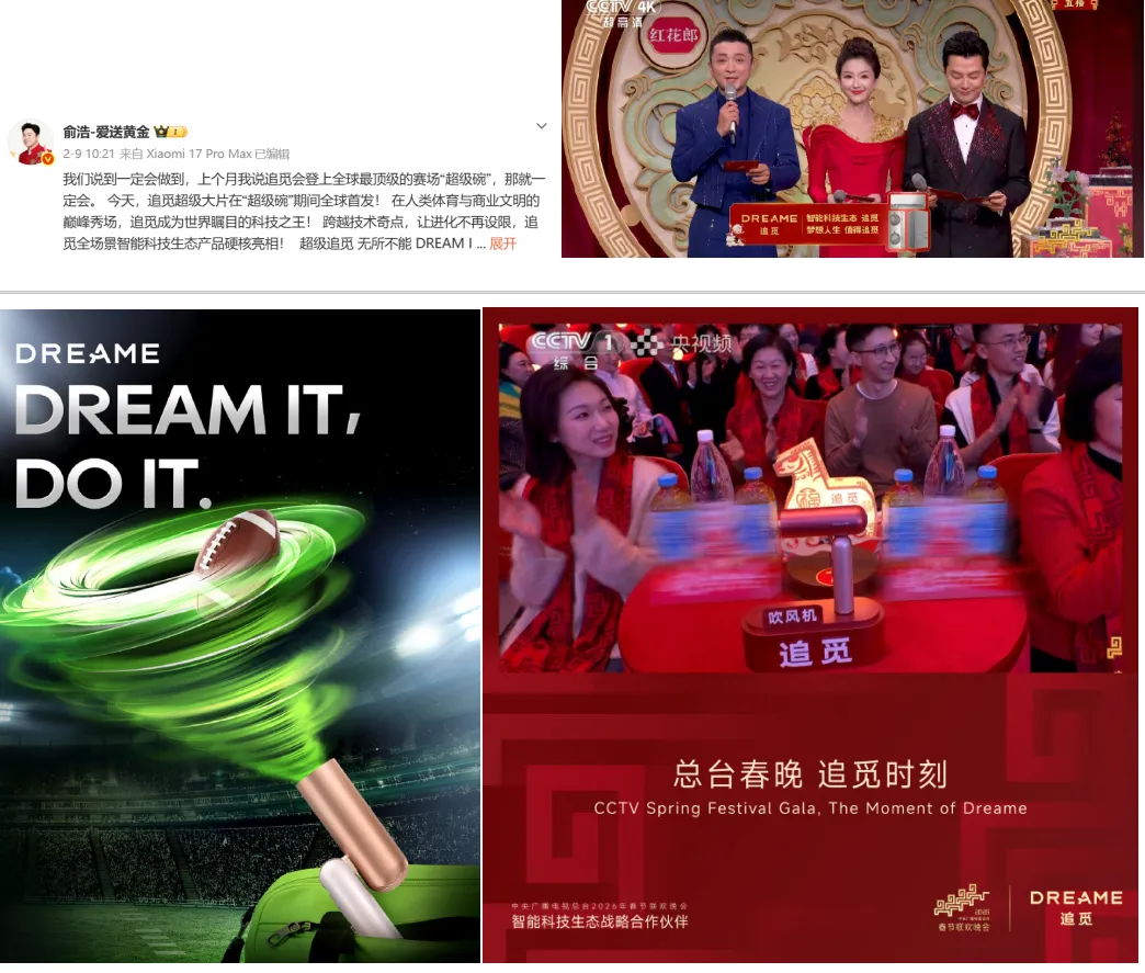 毕竟,与年会仅隔5日(北京时间),追觅便以近千万美元重磅投放素有“美国春晚”之称的超级碗黄金时段,成为中国首个霸屏全美的高端智能生态品牌。对此,CEO俞浩再度转发,并表示“我们说到一定会做到,上个月我说追觅会登上全球最顶级的赛场‘超级碗’,那就一定会”。投放+CEO转发的操作既震撼了国内科技圈人士,也向北美市场高调宣告了追觅全球化的野心,当然也不排除“一石三鸟”,让关注国家顶级赛事的国内球迷也再度加深对品牌硬核实力的印象和认知。