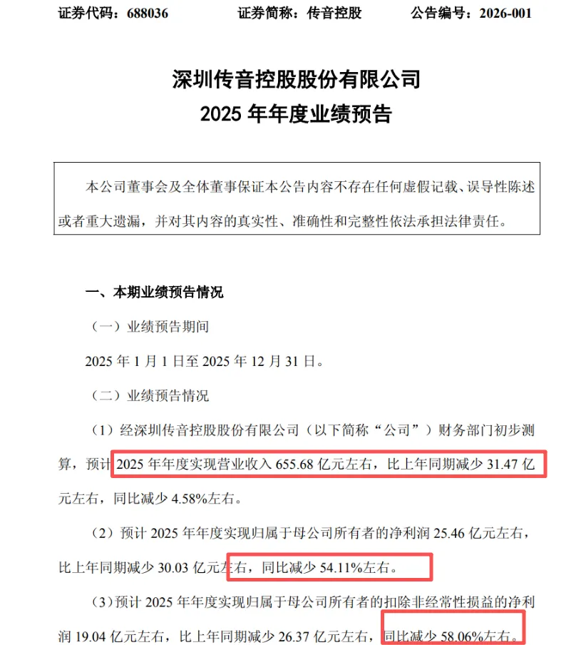 近日,深圳上市大卖传音控股发布2025年度业绩预告,“飙红”的业绩令市场哗然。