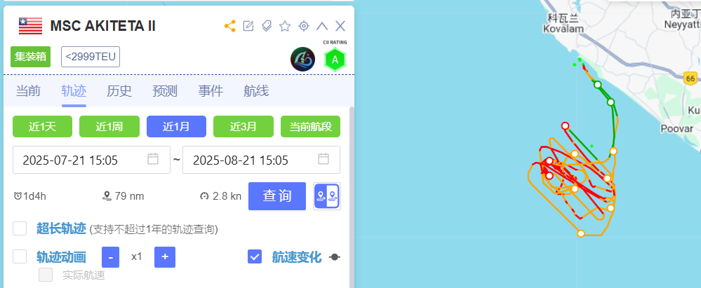MSC Akiteta II 船舶轨迹 图源:船视宝 侵删