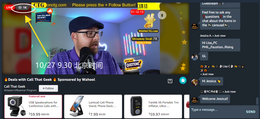 OK看看上图,712个在线观看,在美国时间的周三早上,对比上周写的【品牌推广】- Amazon Live要不要做?,上周同期(10/20)的数据是:305,足足翻了一倍多。图中的时尚美妆博主也是很敬业,早早起床撸妆为了与网友们见面哈哈哈哈(respect)不红没道理!评论区的网友积极互动问候good morning,博主每一个都回复,让网友们感觉到被重视,提供了情绪价值!试想一下,你一进入某直播间,主播就欢迎你的到来,你开心不?