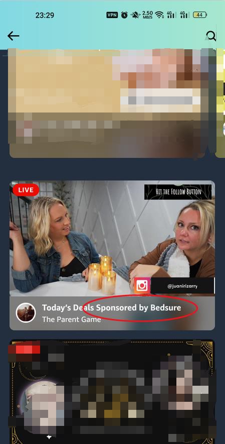 这次从手机App查看,如何查看>App的搜索框输入[live],第一个结果点击跳转即可。虽然亚马逊还没在home page加入livestream模块(估计也快了)但live的界面已经到位了!