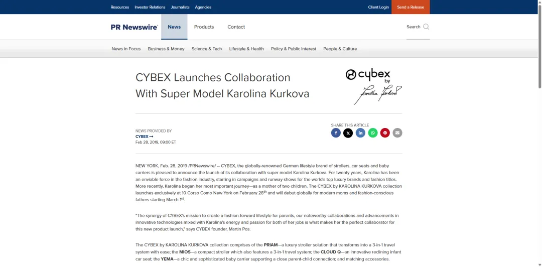 CYBEX选择Karolina Kurkova的核心逻辑的是:既借助其时尚界的权威身份,为品牌赋予高级质感,强化高端调性;又依托其“现代父母”的真实身份,让高端设计落地于真实育儿场景,避免联名沦为“空中楼阁”,实现“时尚与实用”的完美平衡。