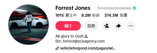 选择拥有820万粉丝的@forrestsautoreviews,核心在于其受众与CYBEX高度契合——粉丝以18-44岁男性为主(占比超60%),77.58%位于美国,其余集中在加、英、澳等高端主销区,且博主兼具“年轻父亲”身份,既能用专业视角解读产品科技,又能以父亲身份共情育儿痛点。