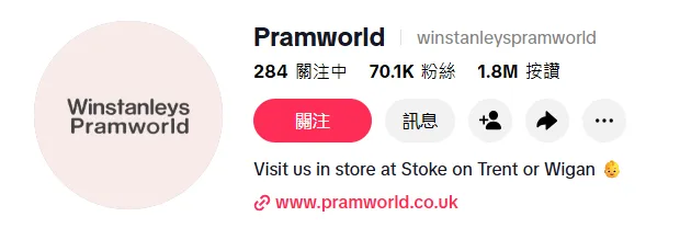 针对25-34岁育龄女性(核心决策人群),CYBEX选择拥有7.01万粉丝的垂类博主@winstanleyspramworld——其85%内容聚焦婴童出行解决方案,擅长产品功能可视化演示,英美用户占比76.92%,具备中高端消费能力。