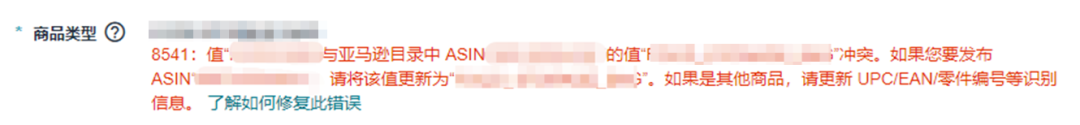 “8541:提供的商品信息与亚马逊目录冲突。”