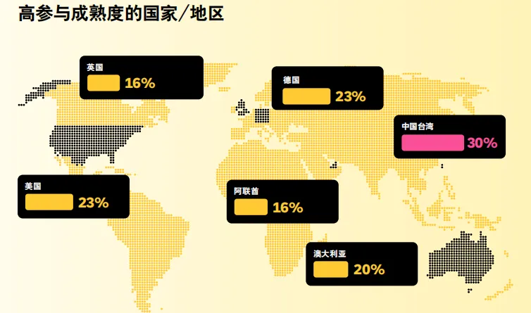 譬如,此前某营销从业者曾向霞光社透露,台湾几乎是全球获客成本最高的地区,市场已经迈入高度饱和期,从这个角度来说,当地消费对品牌服务自然而然更为“苛刻”。而据《全球客户参与度指数报告》,台湾也确实凭借30%的数据,成为全球参与成熟度最高的地区。
