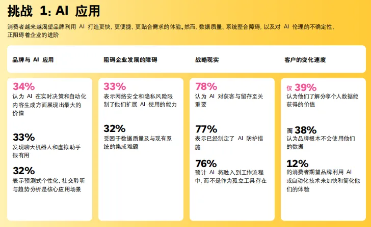随着AI技术的平权以及消费者对定制化需求的高度渴望,品牌利用 AI 打造快速定制体验似乎已经是不可阻挡的趋势。在这其中,有效数据的沉淀、全域系统的整合程度、企业对AI应用合规伦理和数据安全的管控,都是让AI技术跨越浅层试用阶段,从营销噱头转向经营利器和赋能实效的进阶核心。
