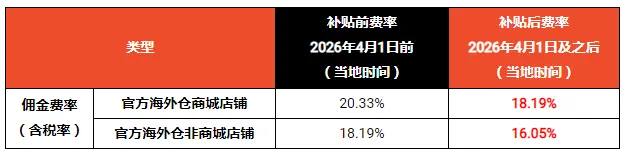 为鼓励卖家布局本地化履约,Shopee泰国站点于2026年4月1日(当地时间)起推出官方海外仓店铺佣金补贴计划。该计划与佣金上调形成对冲:凡符合条件的官方海外仓店铺订单,均可获得2.14%的佣金补贴,即实际支付佣金将在原费率基础上相应减免。