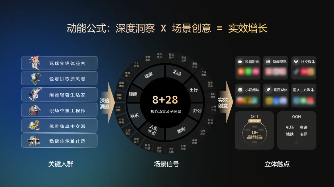 更关键的是,在AI与全场景时代,上述要素可以真正协同。过去,缺乏数据和连接时,持续讲好一个品牌故事非常困难;而如今,海量数据和智能技术为创意的长期运营提供了强大支撑。品牌能够借助统一账号体系和IoT设备跨屏连接用户,通过算法和AI实现千人千面的内容匹配,并借助自动化交互实现与用户的持续对话。技术让“在对的场景,用对的内容持续触达对的人”成为可能。