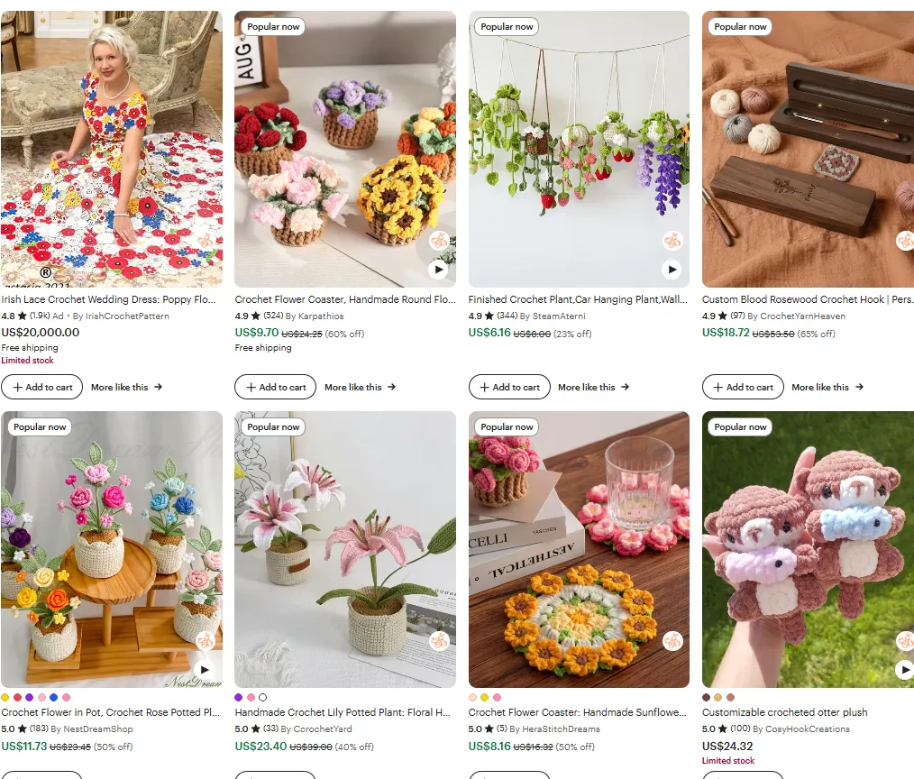 Etsy平台应该是钩针编织卖家最大的聚集地了,很多超级牛的钩针编织大神都在这里赚钱钱。