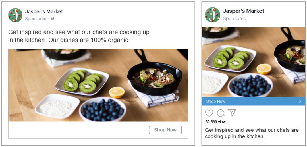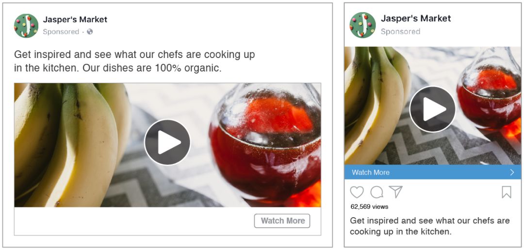 幻灯片广告和一般视频一样,可以在智能手机、平板电脑和电脑的 Facebook 和 Instagram 中播放,并且还提供与视频广告相同的指标。