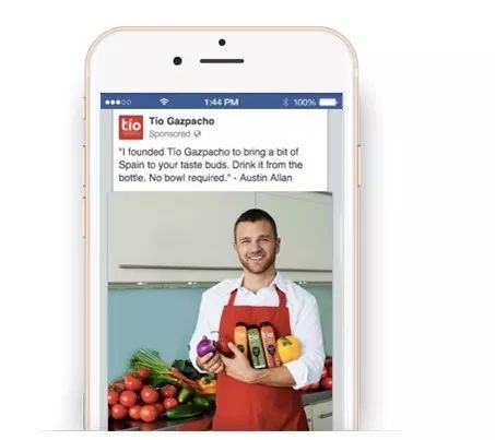 下方 Tio Gazpacho 的广告讲述了公司创始人创业的初衷。详细了解如何根据目标定制创意。