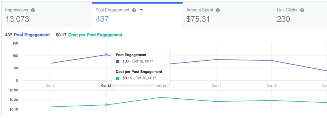 编辑广告后赞、评论和分享的情况