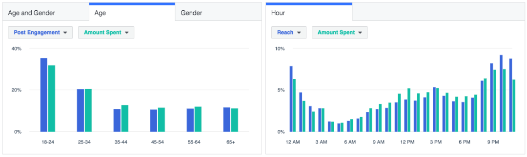 3.查看与广告互动的用户的信息,包括他们的年龄、性别以及在一天中哪些时段看见广告。