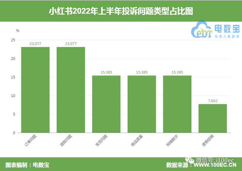 此外,“电诉宝”受理用户维权案例显示,2022年上半年,小红书还疑似存在订单问题、退款问题、发货问题、商品质量、网络欺诈、虚假促销等问题。