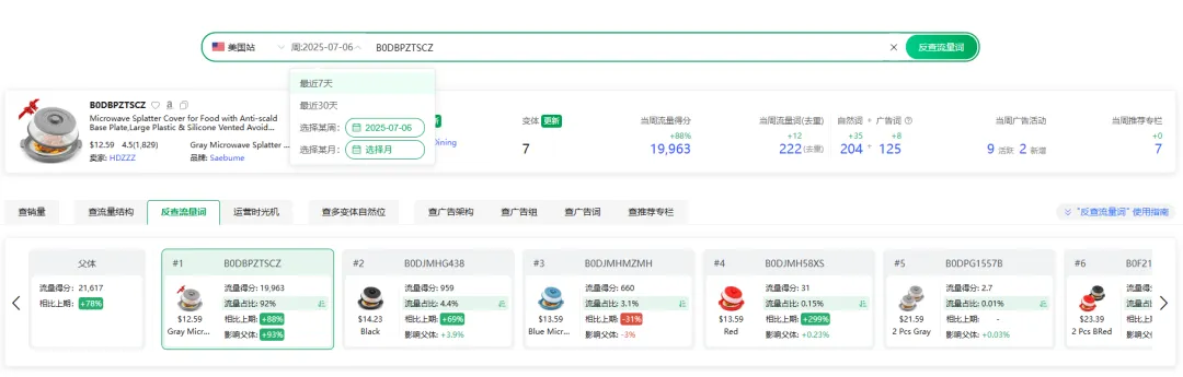 最近拆了一款微波炉防溅盖的流量结构,看完之后有个判断越来越清晰——旺季能不能赚钱,七成取决于90天前词库的地基打没打好,大促那两天的出价反而只是收尾动作。