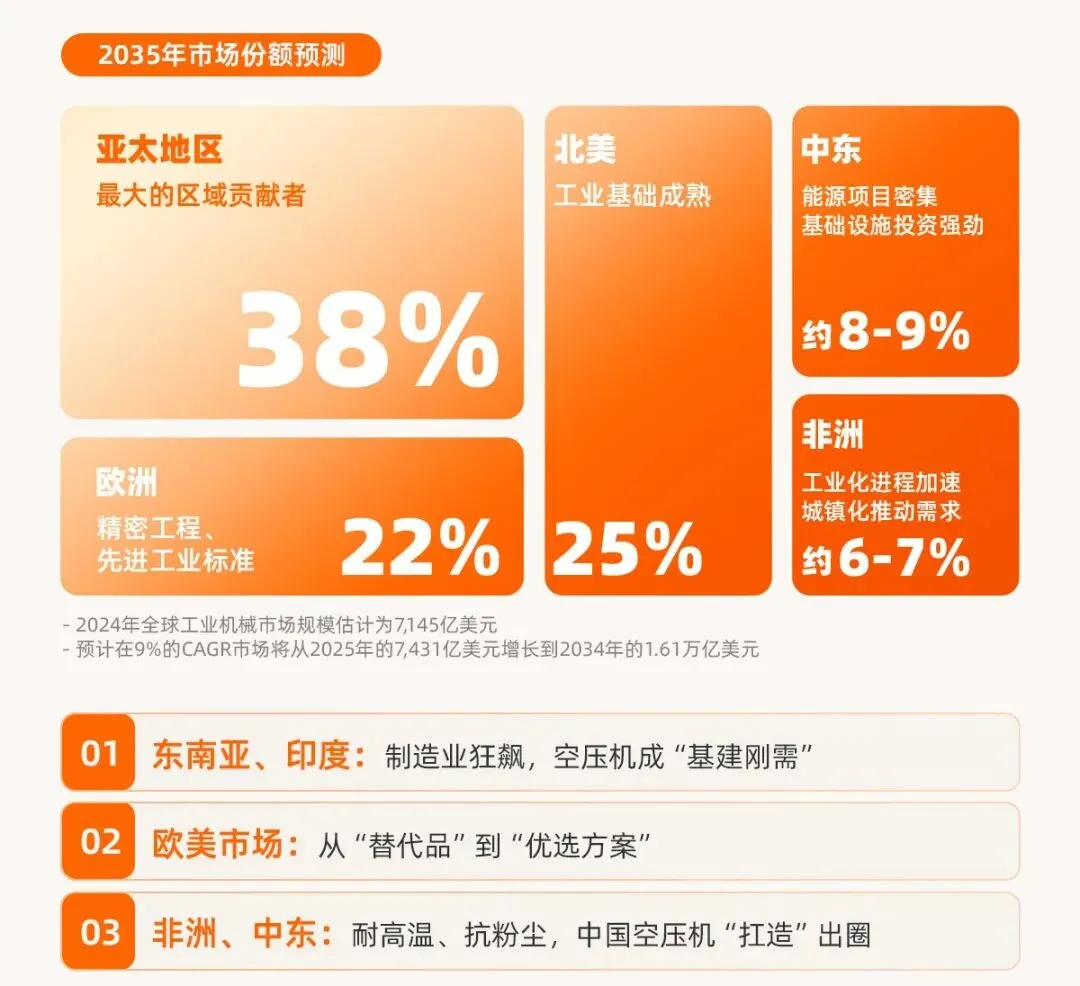 另一方面,是“新兴势力”的渴望。 亚太(38%份额)依然是全球最强劲的心跳。从越南的纺织厂到印尼的化工厂,工业化的车轮滚滚向前,每一分钟都需要更多的压力、更多的动力。