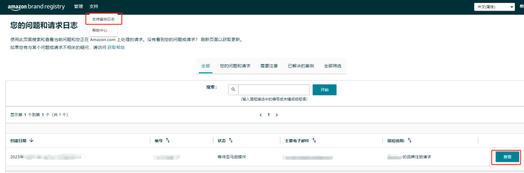 提交完备案申请后,您可以通过登录品牌注册后台,点击【支持案例日志】- 找到对应的case id 查看 您之前提交过的所有申请状态。若显示“已批准”或者收到邮件通知备案成功,则品牌备案完成。