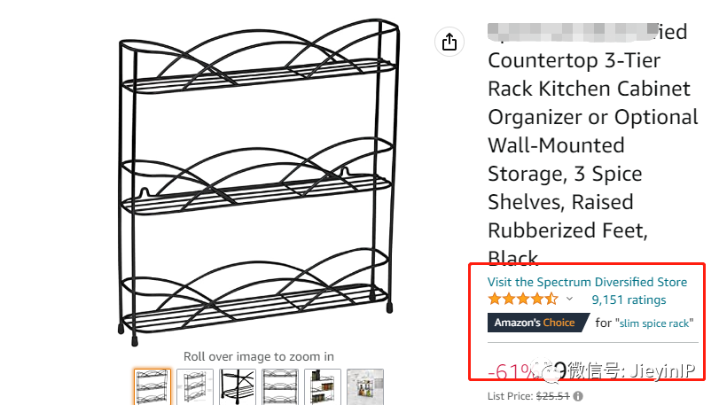 今天分享的这款spice rack香料架,它是亚马逊美国站的Amazon'sChoicefor "spice rack",售价9.92美金,留评高达9151.