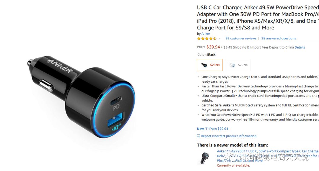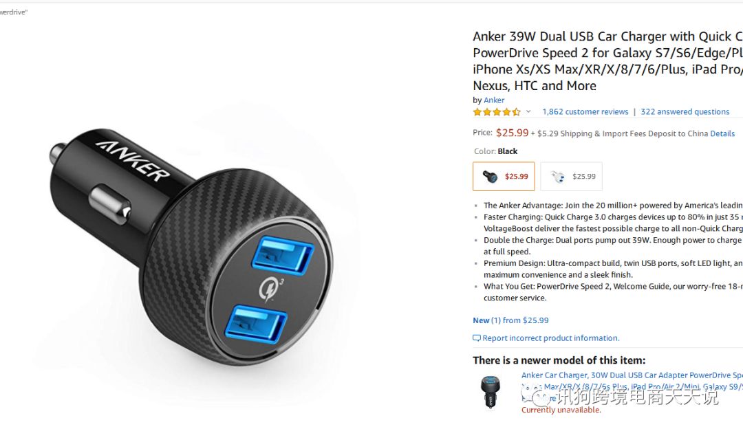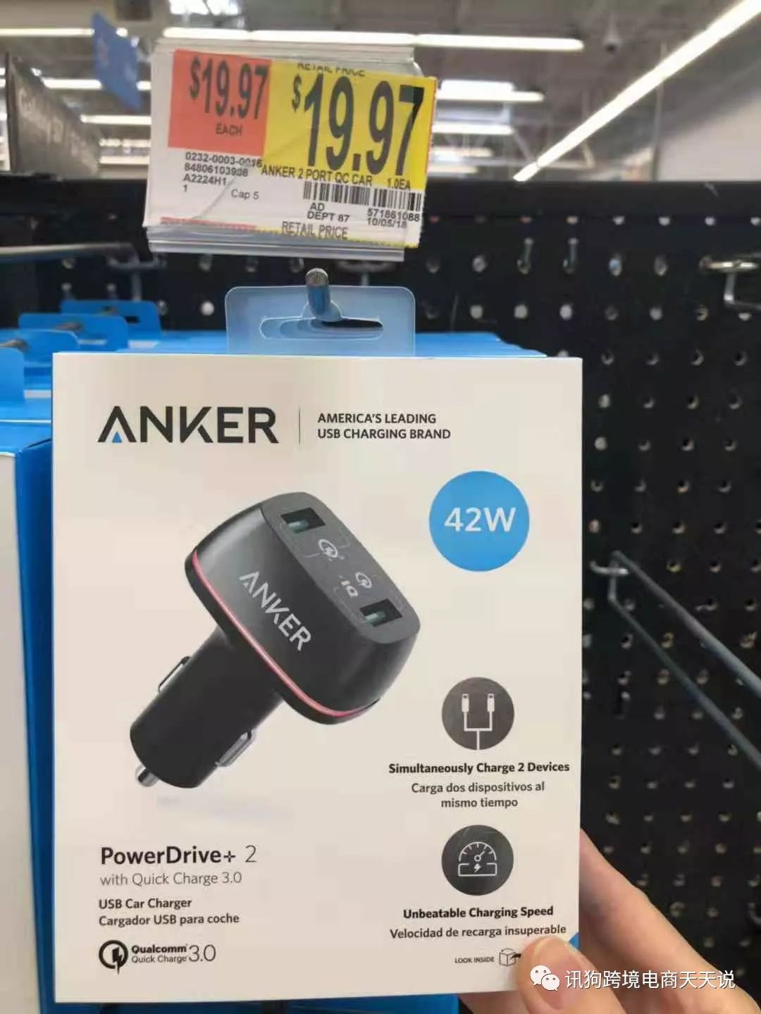 发现Walmart这款车充的售价居然比Anker亚马逊店铺里的款式价格便宜。