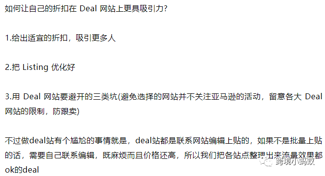 卖家可以在亚马逊平台上做一些促销活动,然后分享到 Deal 网站,因为这个网站本身就汇聚了着大量买家,大多数都有很强的购物欲望,属于精准买家。所以当他们看到自己感兴趣的促销活动,就会用卖家提供的折扣码下单购买产品,这样能够带来更多的流量和销量,在短时间内提高销售速率。