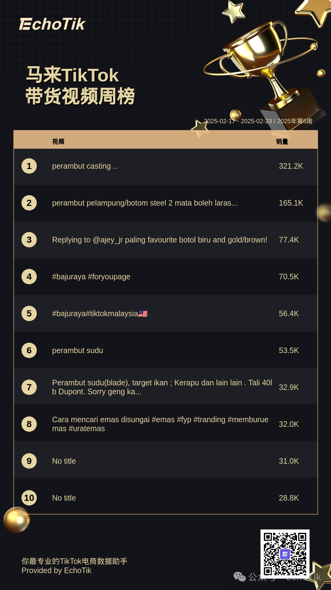 TikTok Shop热门视频周榜 ,查看最新周有哪些热门视频冲上榜单