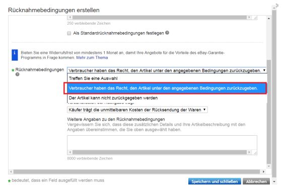 2、在“Rücknahmebedingungen”下拉框里,选择第二个选项
