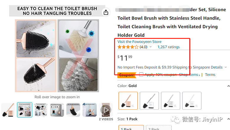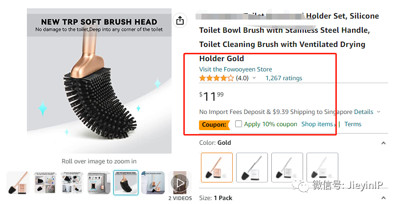 鉴于这款马桶刷在美国、澳大利亚、中国已经有了外观专利,所以需要跟进销售或者已经在美国站销售相关产品的卖家朋友,应注意规避,以防侵权。在专利有效期限内,如果有侵权专利权人都可以在平台投诉侵权,或在法院进行诉讼维权。