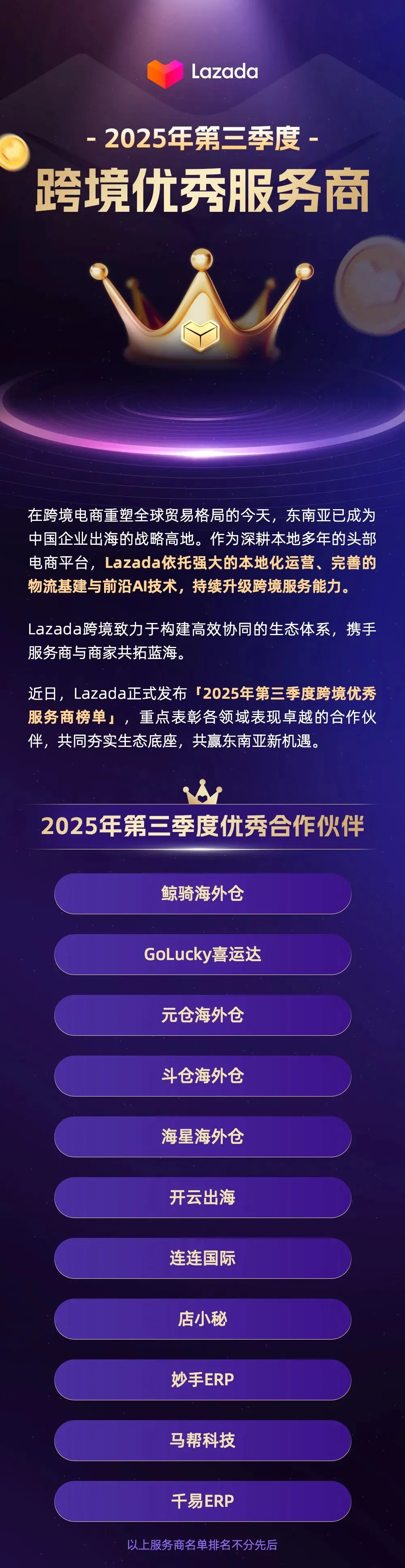 再获殊荣!斗仓海外仓荣膺“Lazada2025第三季度跨境优秀合作伙伴”