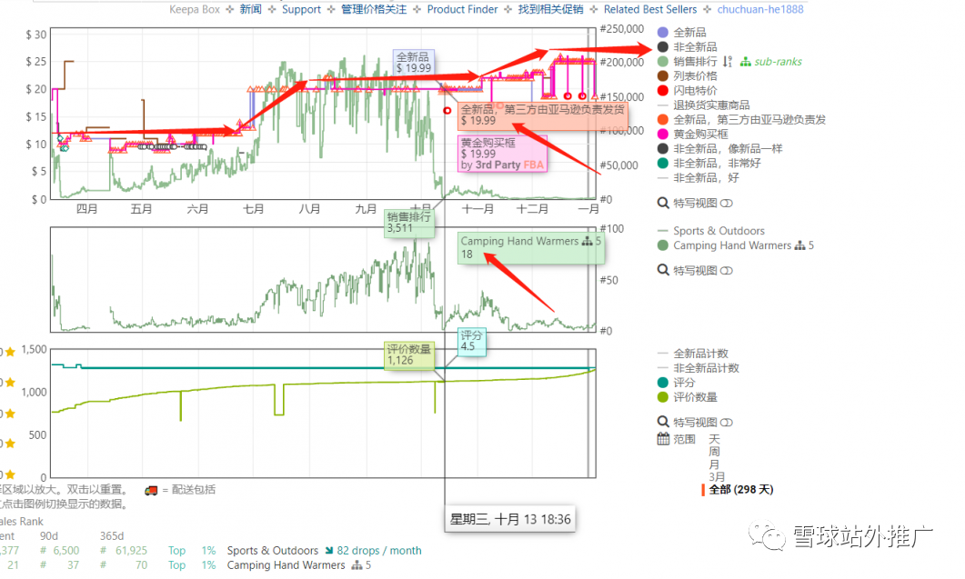 2021的冬季开始,10月15号又开始恢复19.99,然后一波站内促销,16.98,快速拉升排名,放量,稳住排名