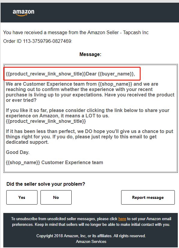 所以通过发送邮件,在邮件里面添加小心机,是卖家最常用的做法。例如: