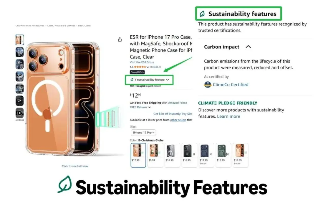 第一,在搜索结果中出现绿色标识。这种视觉差异,会提升点击率。在同质化严重的类目中,这种微小的差别,往往就是点击的因素。 第二,在详情页中强化环保信息。对于越来越关注可持续的消费者来说,这种信息会显著提升信任度,从而提高转化率。 第三,也是关键的一点——进入绿色筛选体系。这意味着产品可以被纳入一个额外的流量池,获得平台主动分发的曝光。 这三点叠加在一起,带来的不是简单的"优化",而是流量结构的变化。同样一个产品,有绿标和没有绿标,所处的竞争环境是不同的。