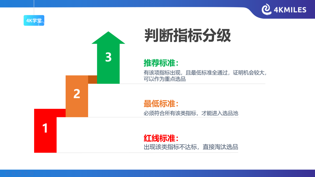 最低标准:必须符合所有该类指标,才能进入选品池。