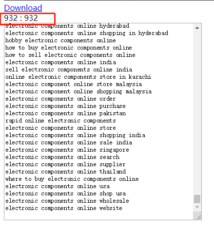 出来了900多个,我就终止了。往下拉,你还可以看到这些关键词的指数、CPC出价、Competition等,和上面的keywords everywhere类似。