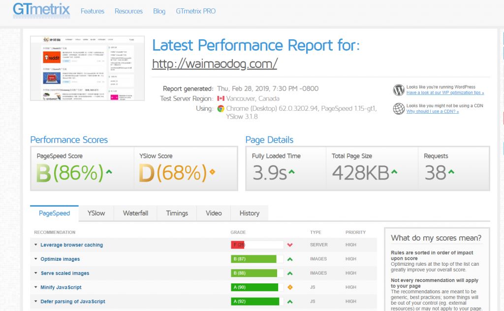 更详细,国外常用的测速工具。细项更多!技术对照这个优化,速度肯定会快不少!