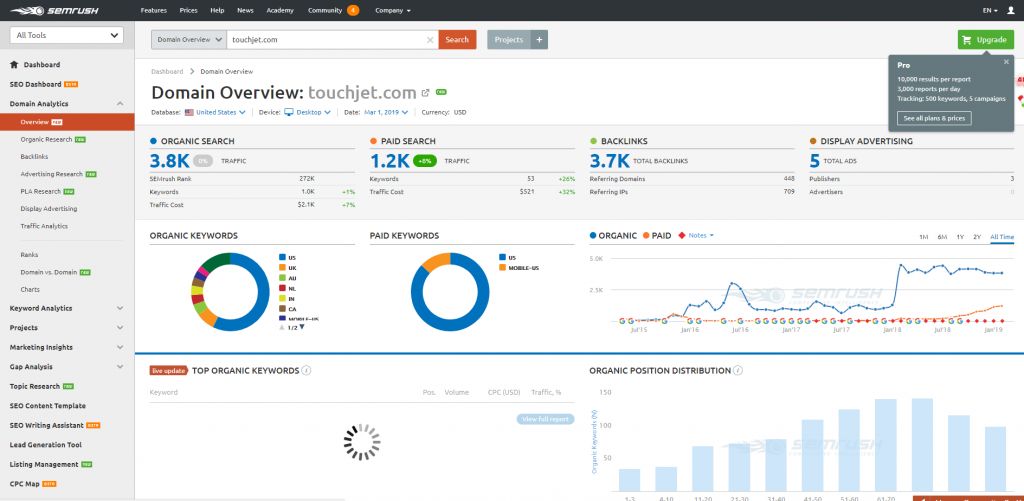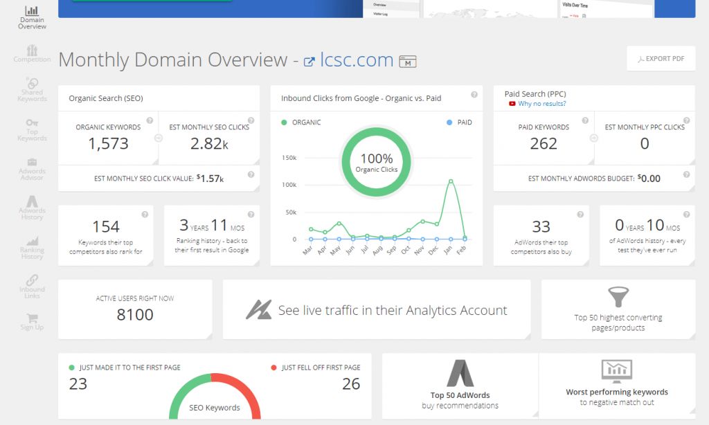 这款工具比SPYFU稍微好一些,数据滞后,但是比较齐全。