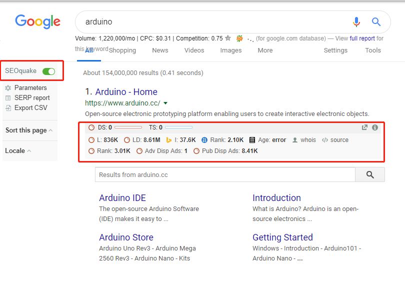 它是一款Chrome插件,在搜索结果页可以看到网站的大致数据统计,类似于Moz Chrome插件。它的数据来源是SEMrush,所以说数据来源还算靠谱!