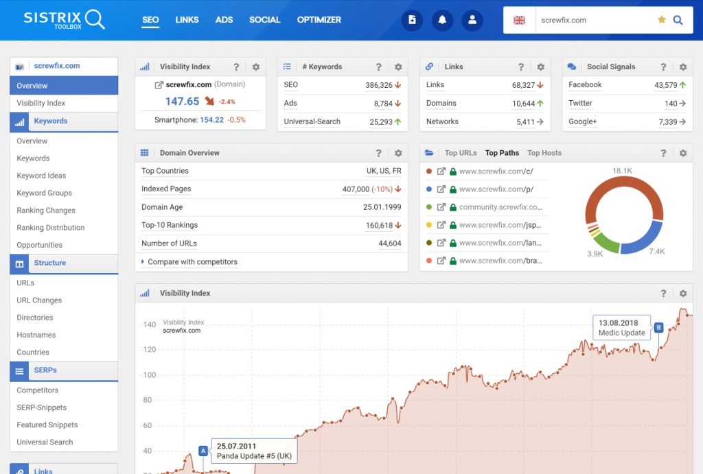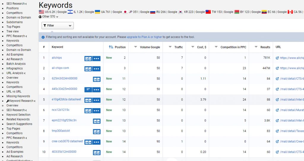 非常详细的Google SEO整合数据分析工具!数据比较准确,它的爬虫也多,所以数据及时性还可以,准确性也算靠谱!目前也是最好的前3名工具之一。