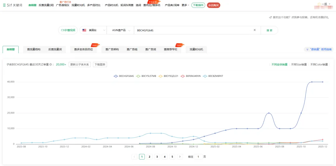 我们需要利用 SIF 的 “查销量” 功能,拉出这个ASIN的全生命周期销量曲线。