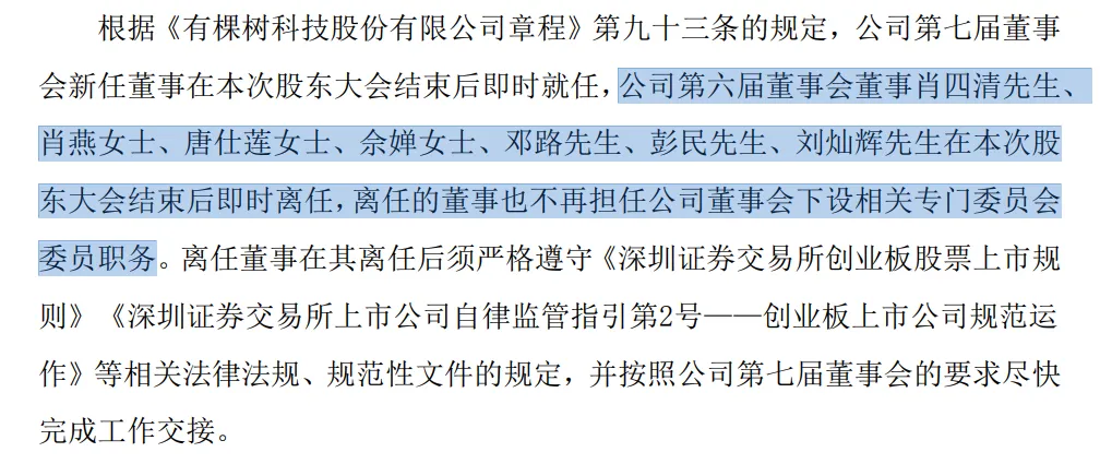 宣布公司创始人肖四清、总经理肖燕、佘婵等核心管理层立刻离任