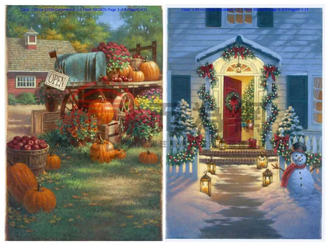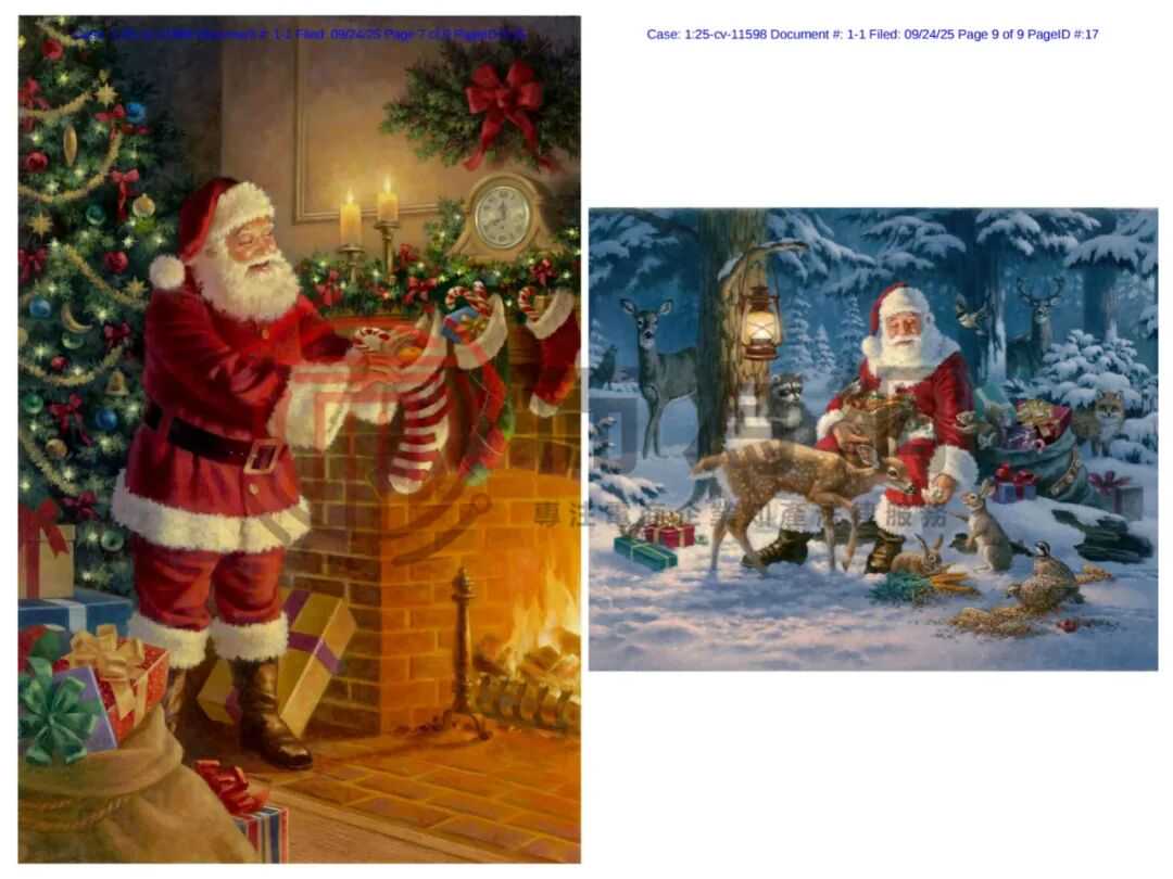 【侵权快讯】25-cv-11598 Keith代理全新圣诞元素版权速看!这4张圣诞主题插画不能用了!