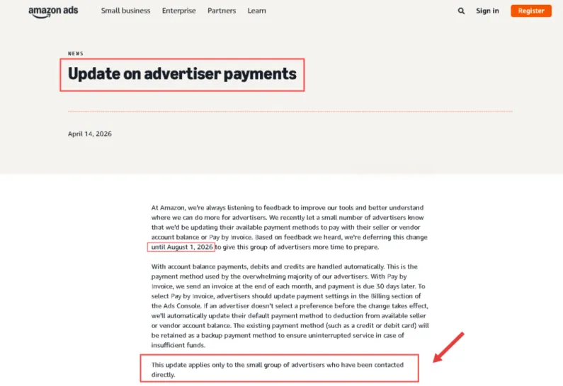 原定于4月15日执行的广告付款方式变更,推迟至2026年8月1日生效!