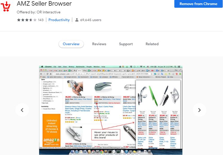 DS Amazon Quick View是有免费和高级版本的,只要把鼠标放在产品页面上就可以很方便的直接显示卖家和排名的信息,但是个人感觉付费和免费的版本没有太大的区别。