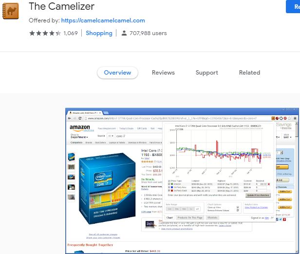 CamelCamelCamel是很多卖家推荐使用的工具,可以提供产品历史记录和排名的信息,为访问的每款产品提供最新的价格图标,如果产品价格有变动时会通知卖家。