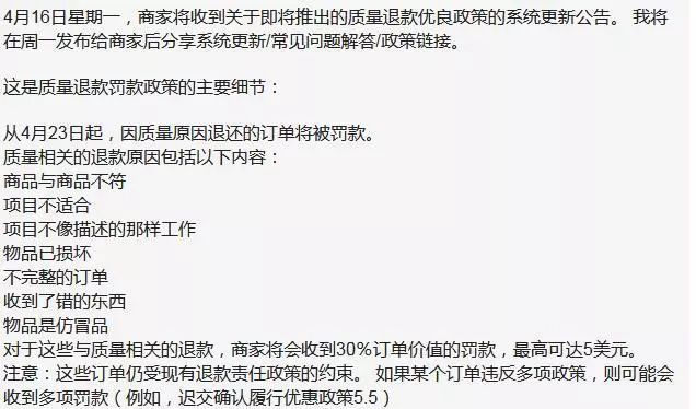 4月16日星期一,商家将收到关于即将推出的质量退款优良政策的系统更新公告。我将在周一发布给商家后分享系统更新/常见问题解答/政策链接。