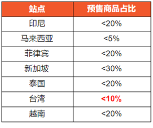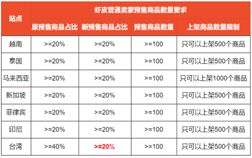 Lily小贴士:另外,商城和优选卖家预售商品需符合下述表格所示占比要求 ,否则将导致商城和优选资格被取消。注:台湾站点商城和优选卖家预售商品要求包含所有品类商品。