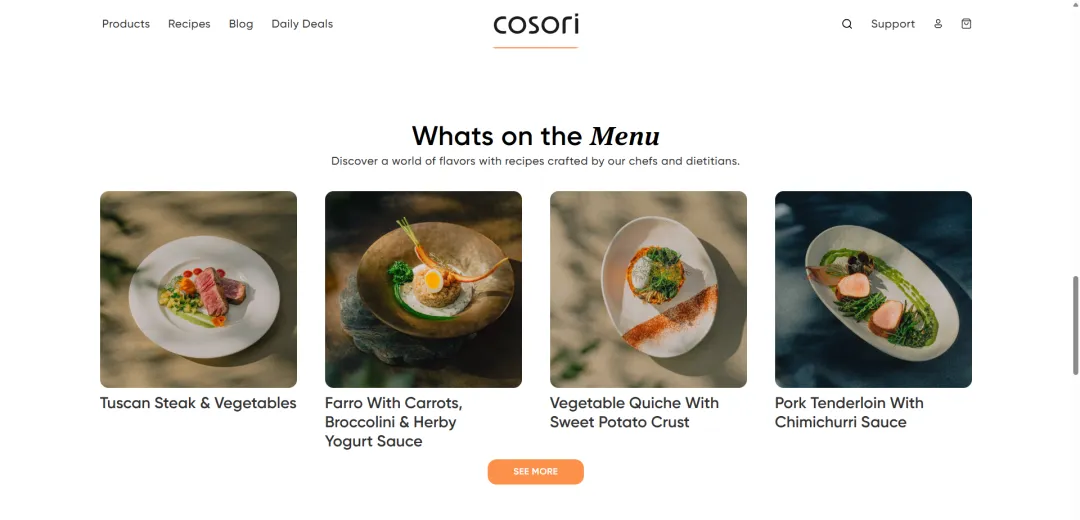 更贴心的是,COSORI还会根据欧美消费者的饮食偏好,推送本地化食谱,比如西班牙炸丸子、瑞典Hasselback土豆、香辣三文鱼碗等,让用户哪怕不擅长烹饪,也能轻松做出符合自己口味的美食。