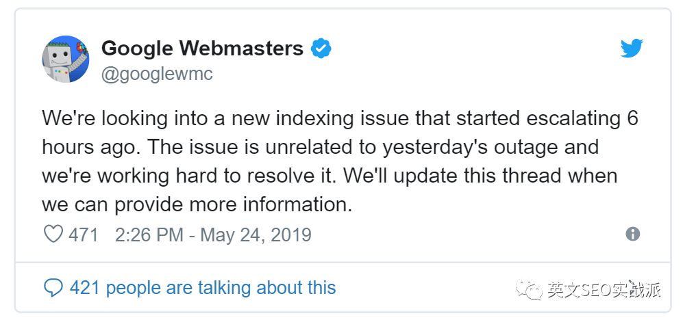 2. 谷歌于24号确认一个新的indexing bug, 具体情况尚未对外披露