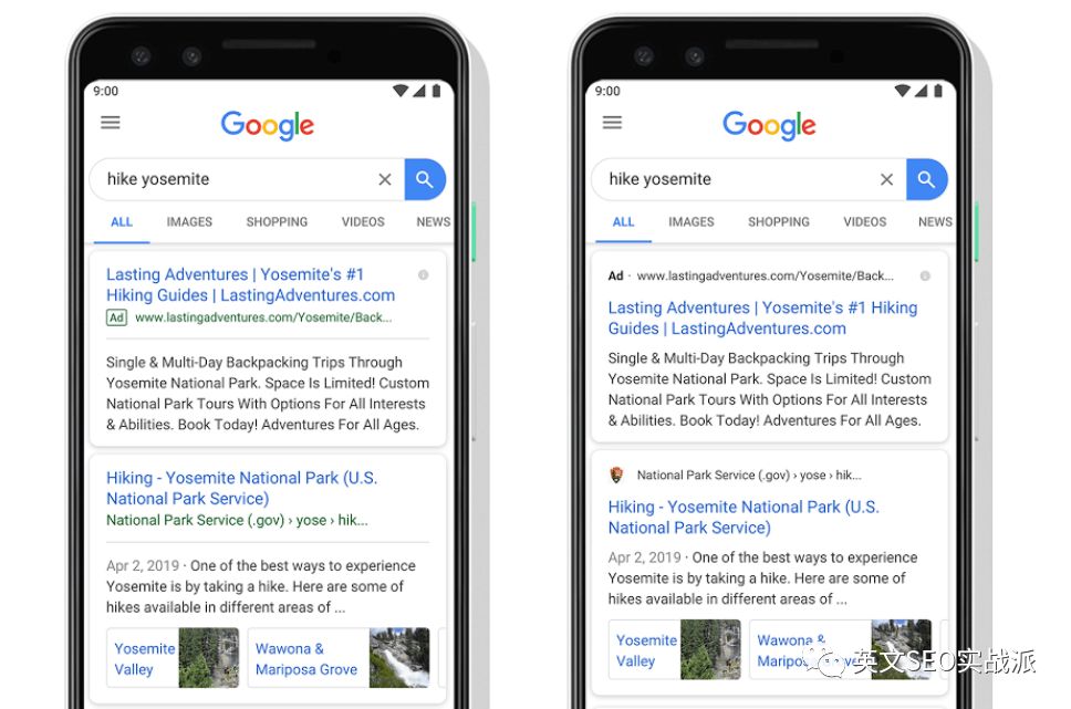 谷歌这次使用了全新的搜索展示界面,谷歌称这次改变添加了更多的 Action Buttons 和内容预览来帮助用户更好的找到自己想要的信息。