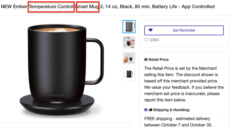 8月6日的品牌产品是一个"Ember"智能温控的马克杯,V小姐抓住了“Temperature"、"Smart"等关键字,找到了一款产品进行“试水”,虽然外观上有较大差异,但是在功能上却不遑多让。